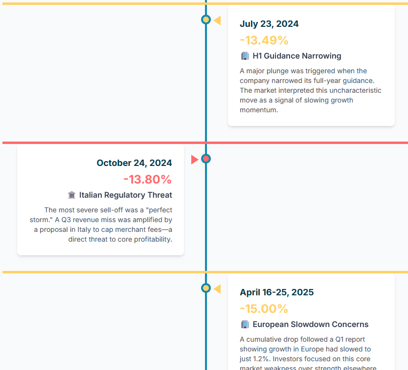 The trigger: earnings miss, regulation, macro shock, peer results, leadership change, etc.
