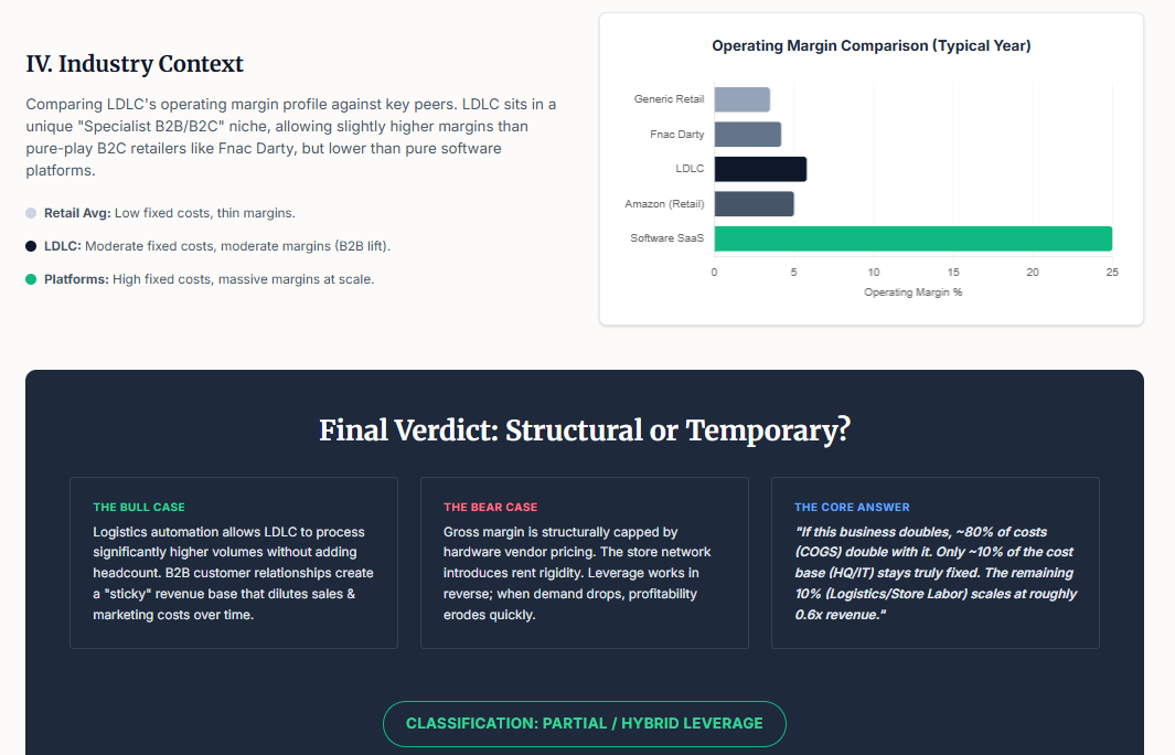 Determine whether operating leverage is structural or temporary, and how it compares to industry norms.