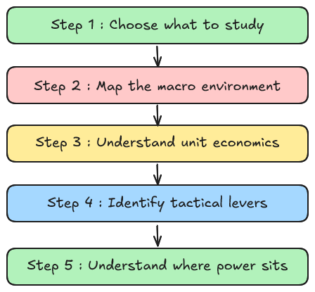 What must remain true for this industry to stay attractive?With this last step, you now have a solid understanding of a sub-sector all in under 60 minutes.