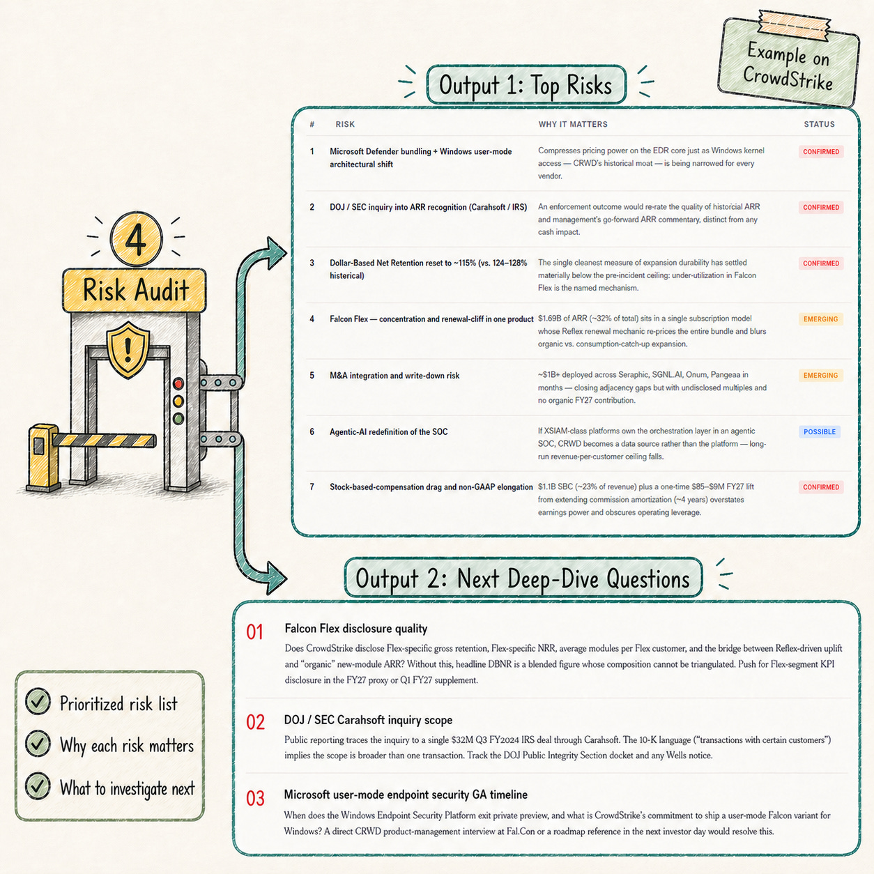 The output is a full Stock Risk Audit. Not a recycled “risk factors” section.