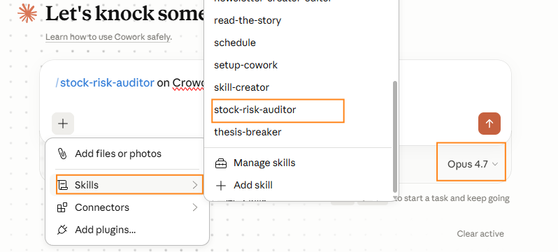 I built a Claude Skill called Stock Risk Auditor.