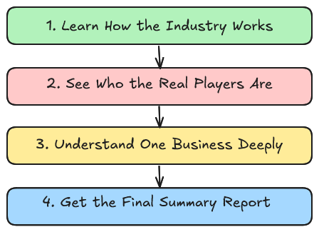 This should answer: “How does the industry work?” Copy-paste the prompt and get the answer in 20 minutes
