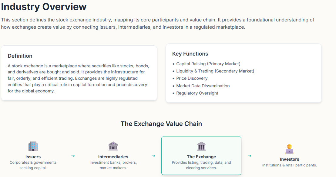 asked on Substack: “Any great primer on the stock-exchange industry?”I didn’t know the industry, so I gave myself a challenge: learn it quickly, make something useful, and show the exact steps I used with AI.
