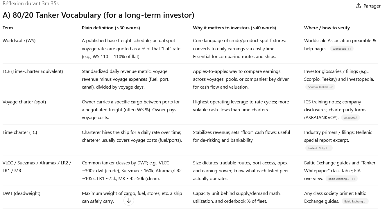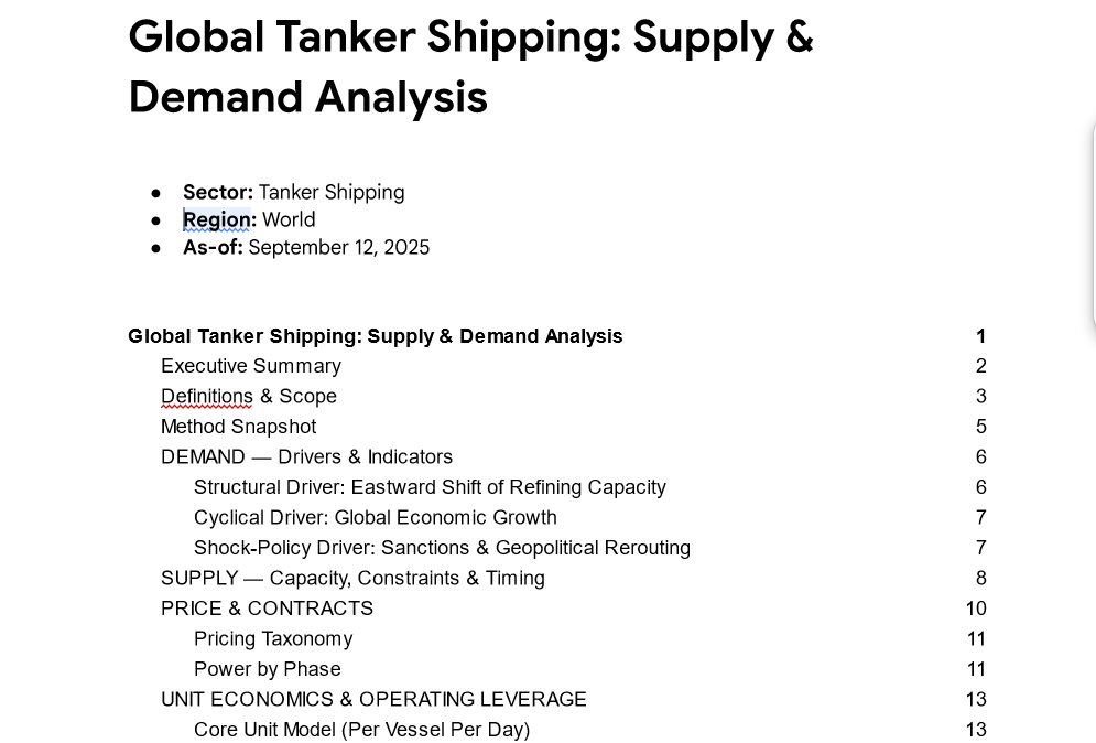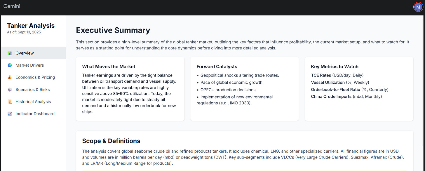 I happen to be in tankers, so I right away tried the prompts on crude and product tankers. It works wonderfully. Now trying in in junior mining, my new pet interest. Thank you for this great tool